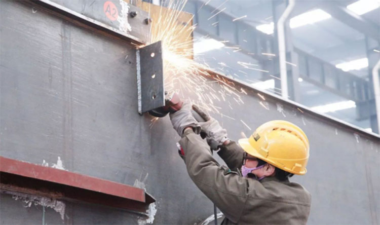 Machines roar in workshop and front-line worker are doing their production work busily and orderly.